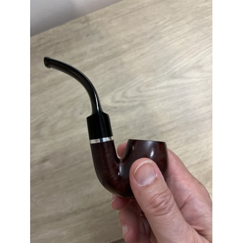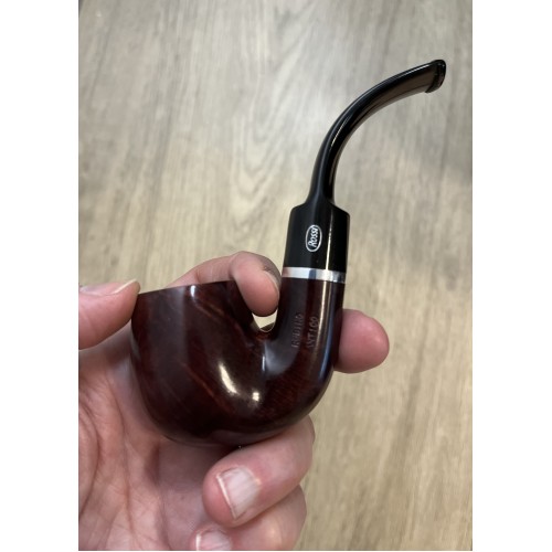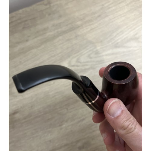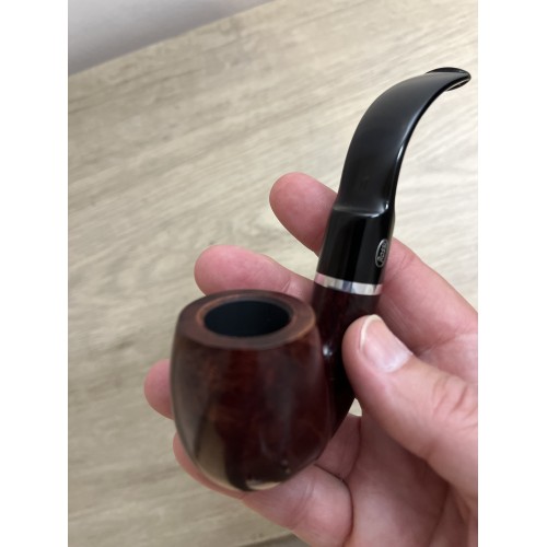 La "8614" de Rossi es la forma más curvada de la marca italiana, similar a la clásica Oom Paul y equivalente al diseño "614" de Savinelli. El cuerpo se curva hacia arriba, casi verticalmente, lo que le da una longitud compacta que cuelga cómodamente de la mandíbula, y el talón alargado y la cazoleta Billiard redondeada se adaptan perfectamente a la mano. En consonancia con las proporciones inglesas tradicionales, el cuerpo y la transición son más robustos en comparación con algunas de las formas neoclásicas italianas de Rossi: una excelente opción para quienes buscan un ahumador italiano con manos libres, pero buscan un estilo más inglés.